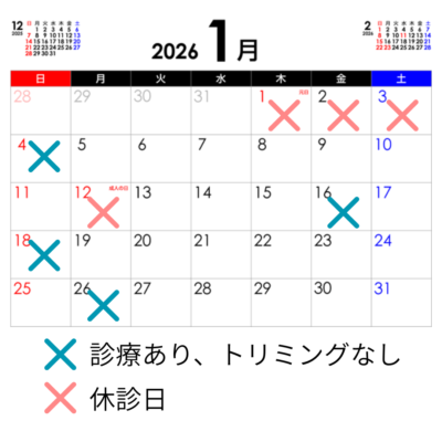 1月トリミングご予約のご案内
